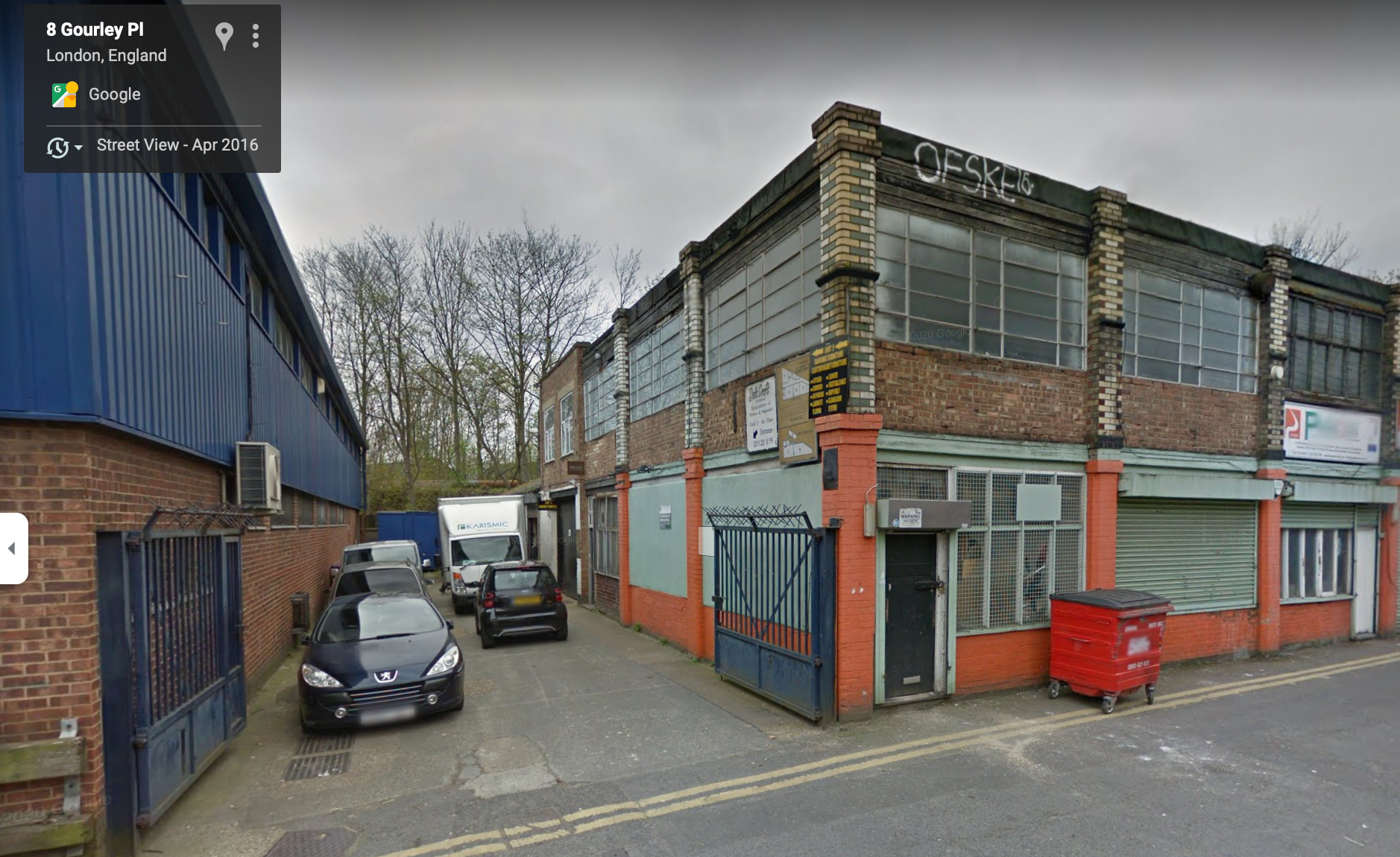 From Seven Sisters Road turn into Gourley Street then first right into Gourley Place, you'll find Beltcraft about 15 metres on your left, entrance is through the blue gates just past the orange and grey brickwork, it's the first building, the studio is the upstairs you can see above the orange and grey bricks in the photo!